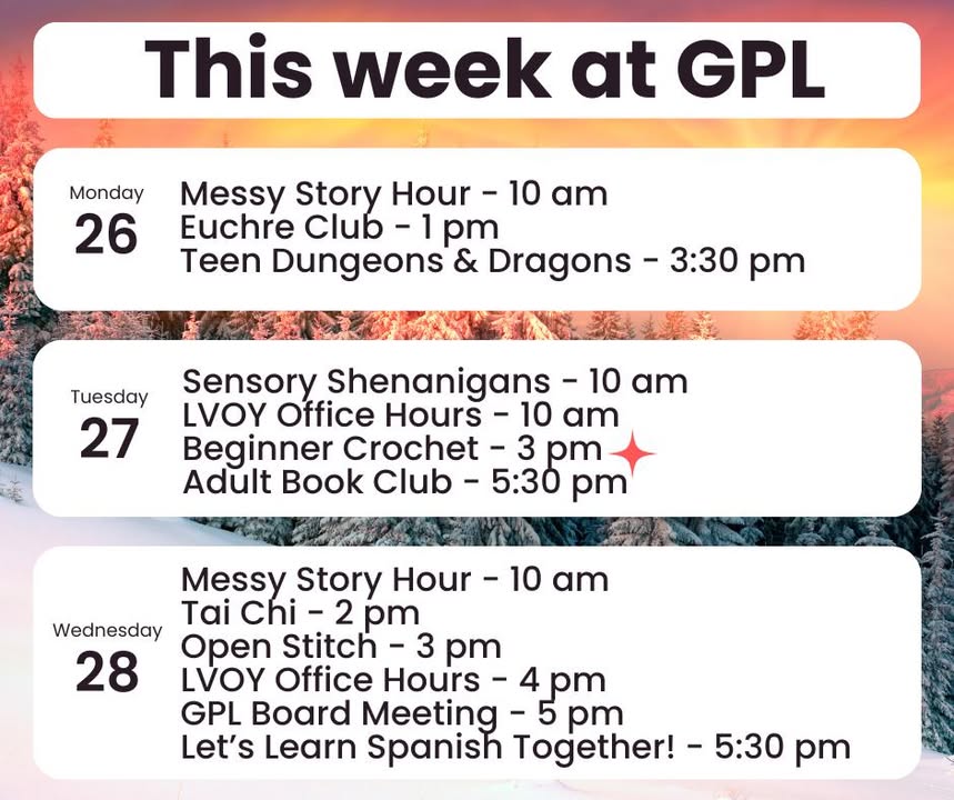 Visitors are invited to browse the shelves, discover new books, and participate in the various programs offered. All events are planned to help community members explore, learn, and connect.